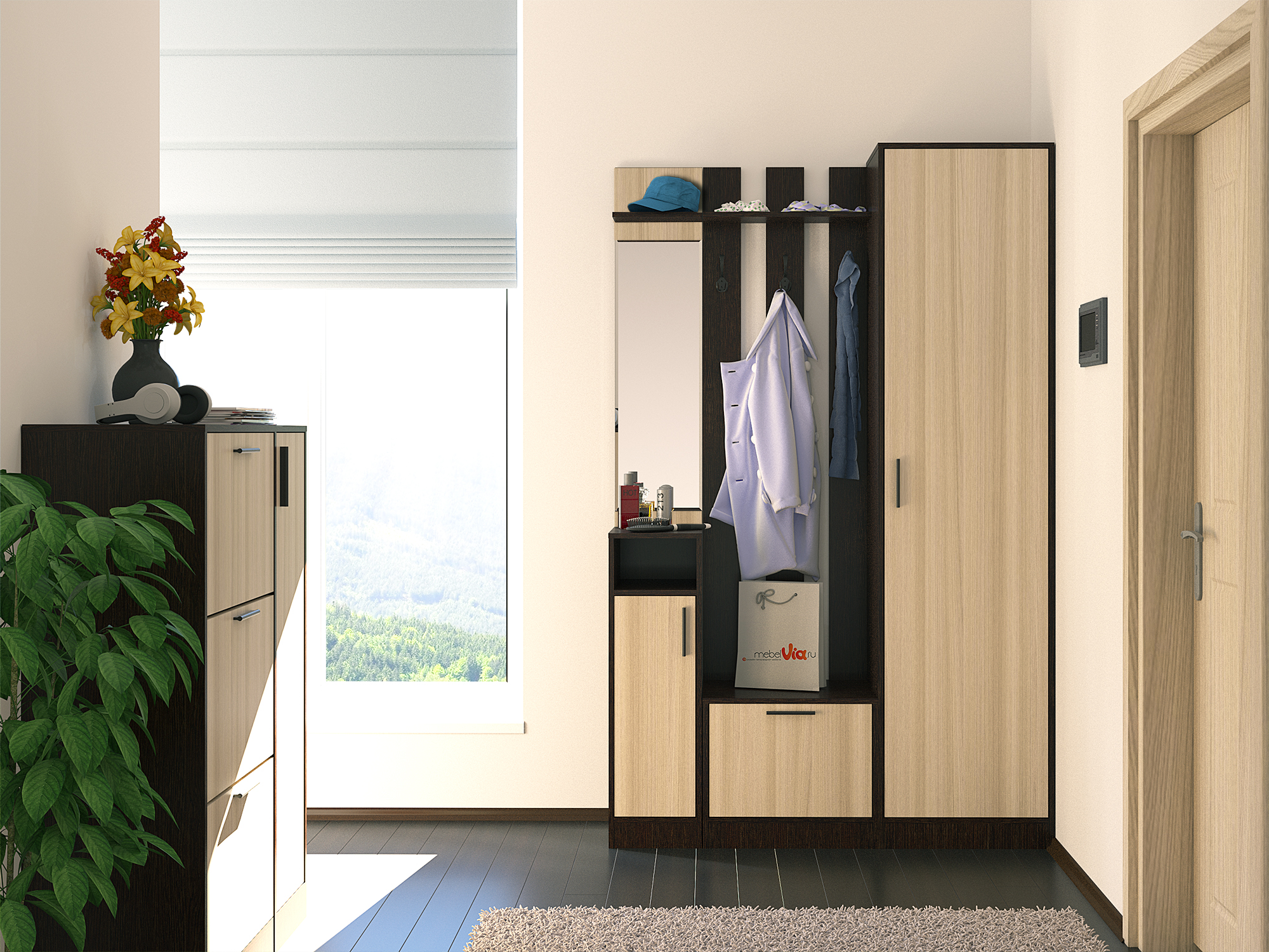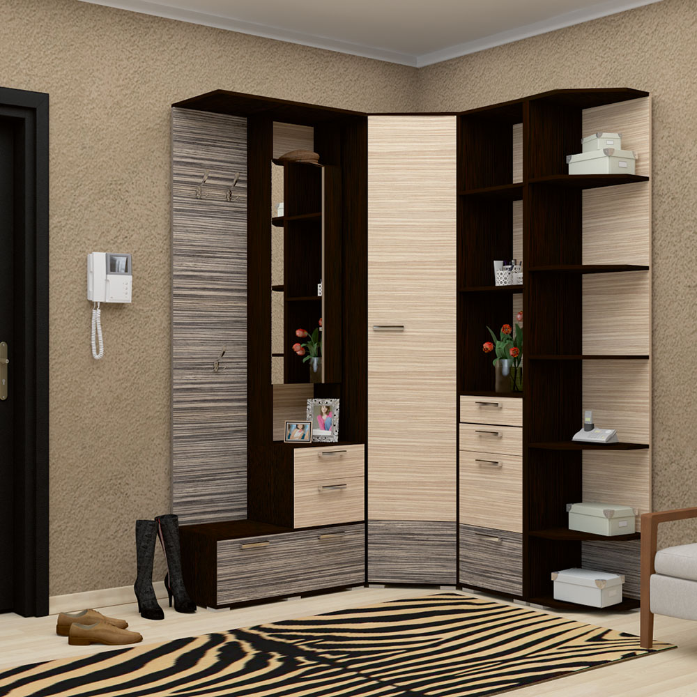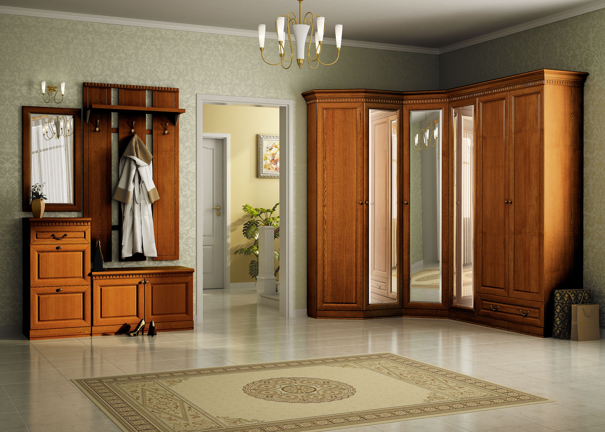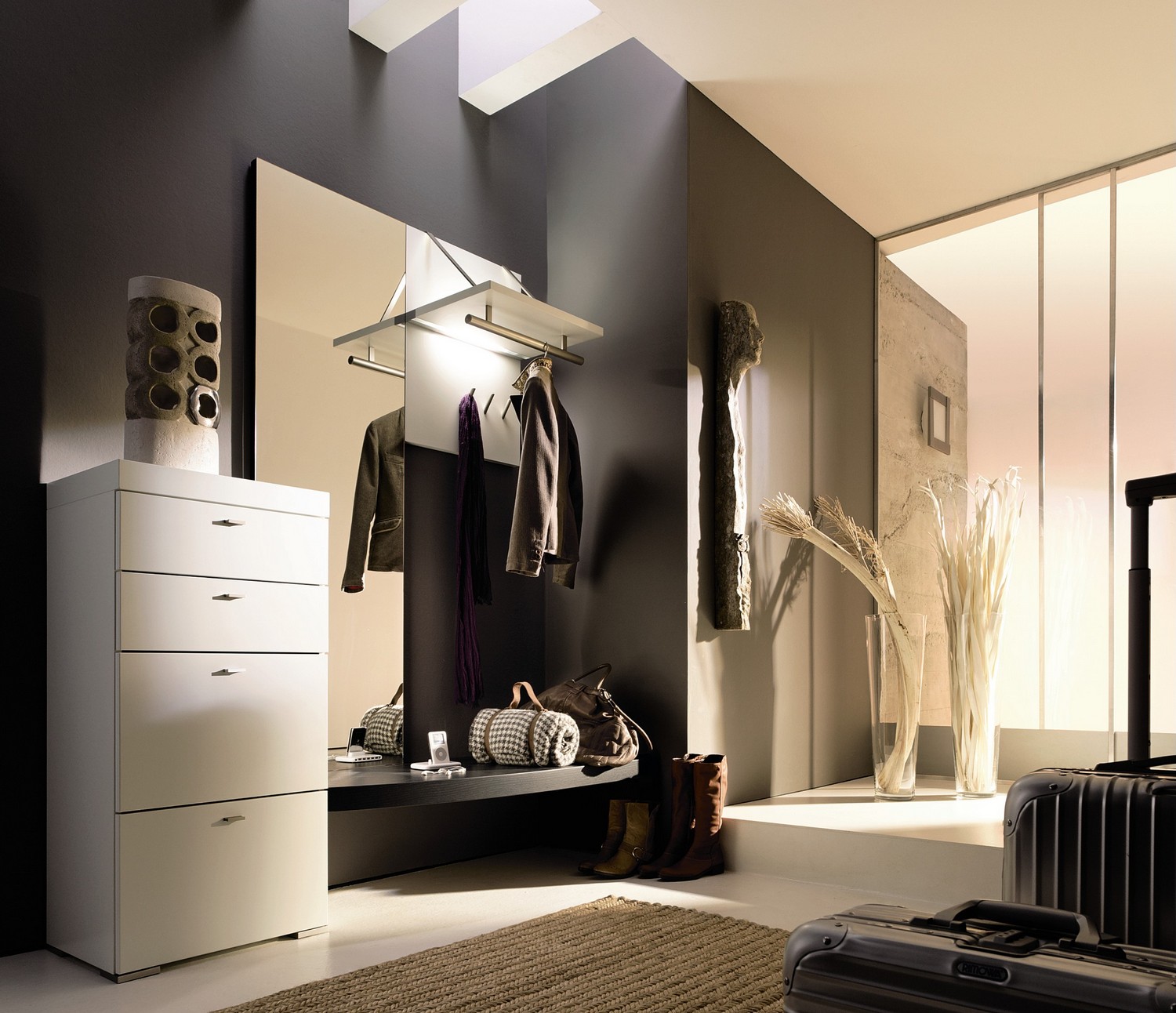 Lassen Sie sich zunächst von den Parametern des Raumes leiten. Also, für ein privates Haus mit einem großen Korridor, können Sie ein großes Set wählen, in dem all Ihre Sachen untergebracht werden, und nicht nur einfache Oberbekleidung. Für einen quadratischen Flur in einer kleinen Wohnung lohnt es sich, kompaktere Produkte zu erwerben, die an einer Wand oder in einer Ecke stehen.