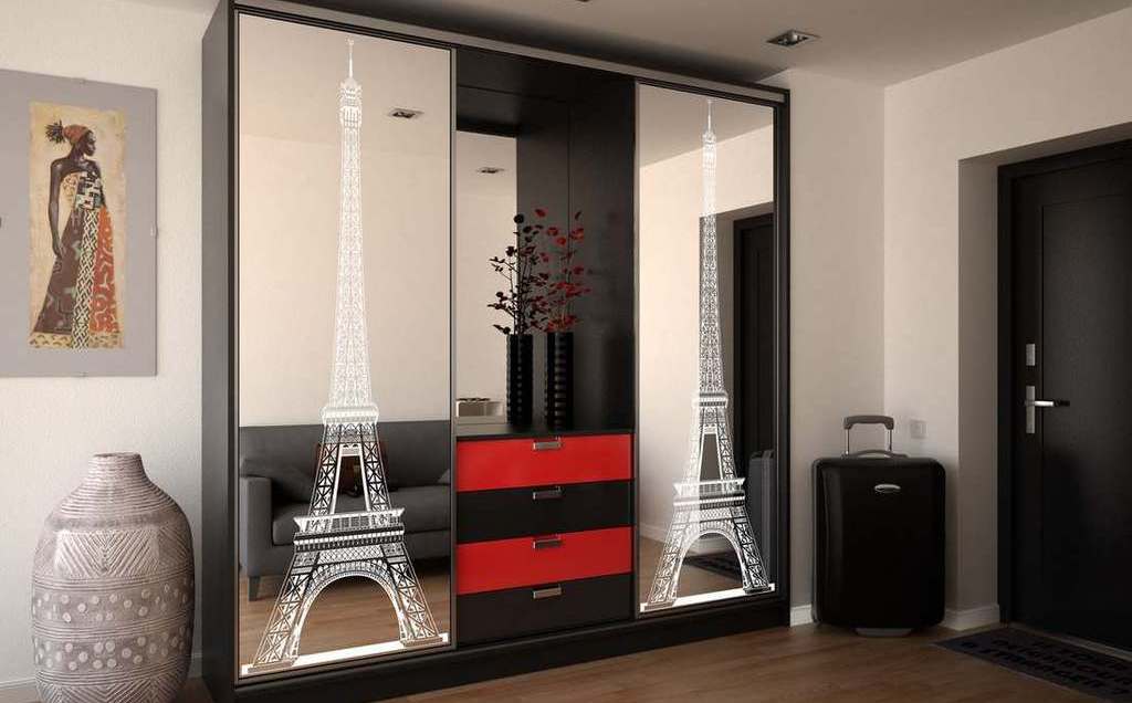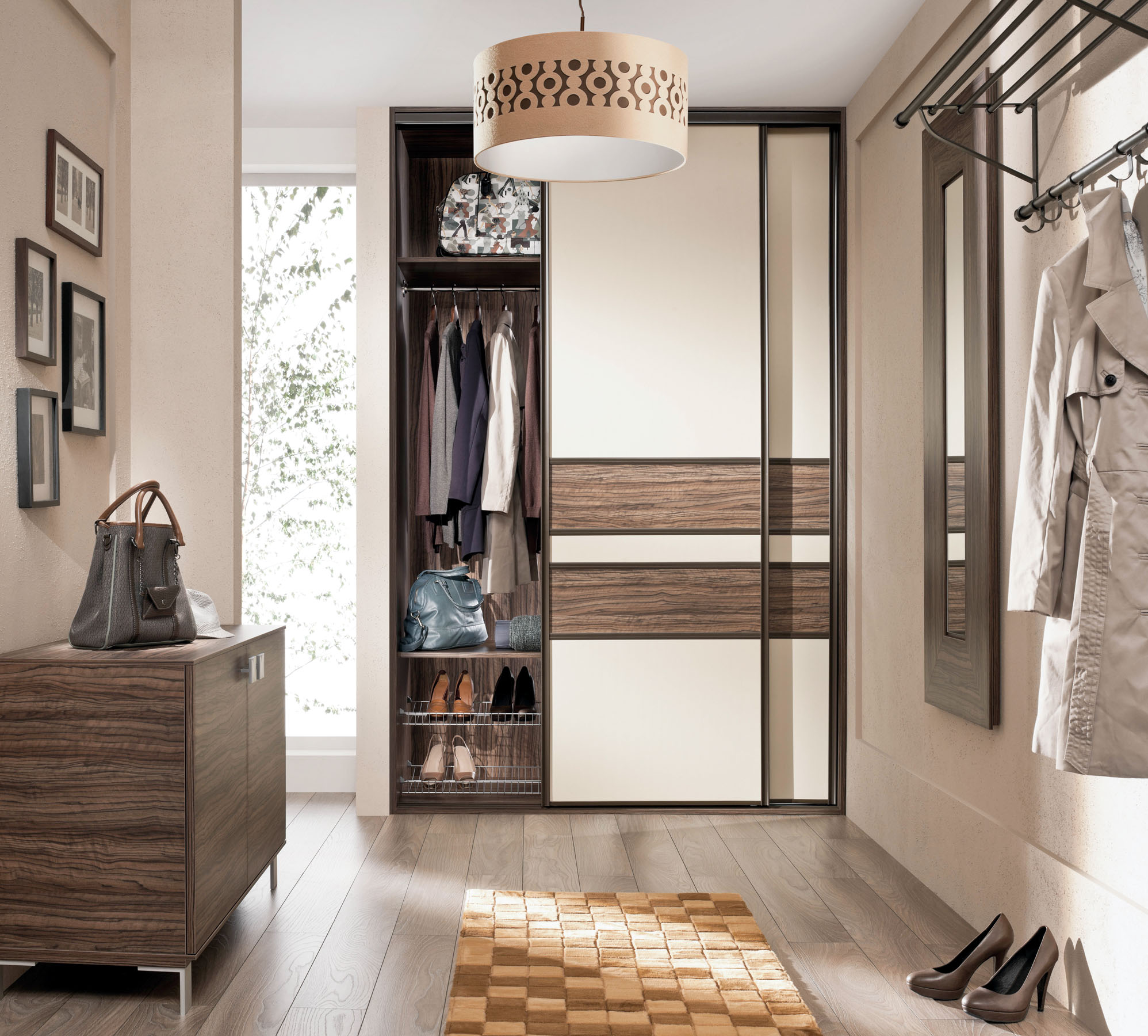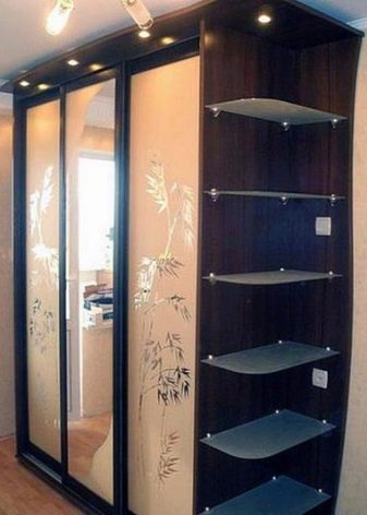 Oft gibt es einen zentralen geschlossenen Abschnitt. Dort können Sie alles behalten, was Sie gerade nicht tragen. Und auf den Seitenregalen ist schon alles andere. Auf der Oberseite des Schrankes mit Flügeltüren sind in der Regel Zwischengeschosse angeordnet. Möbel mit einem Zwischengeschoss sind ideal für einen Flur mit zu hoher Decke.