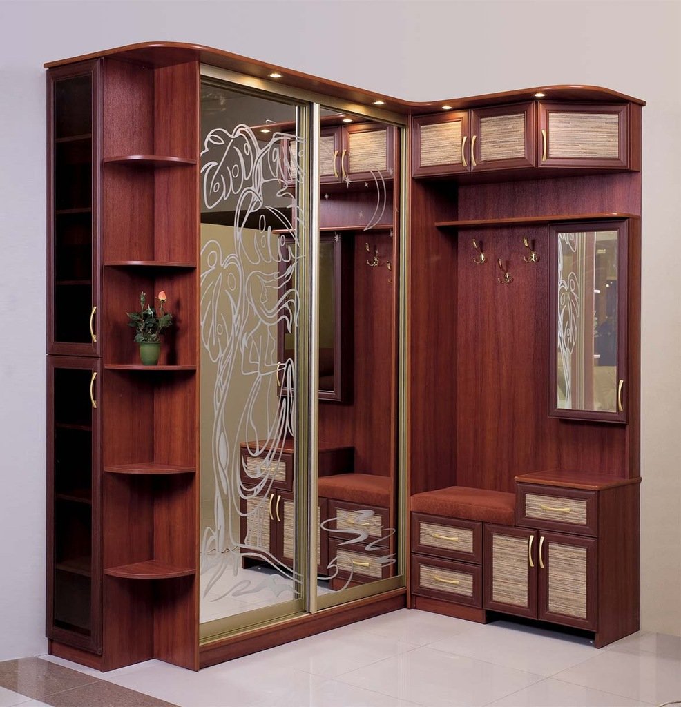 Damit die für den Flur gewählten Möbel nicht nur stilvoll, sondern auch funktional sind, lohnt es sich, die richtigen Sets zu wählen. Da sich die meisten Flure nicht in der Größe unterscheiden, müssen wir die kompaktesten Möbel wählen. Daher bevorzugen die meisten professionellen Designer Eck- oder Einbaumöbel.Stilvolle Eckschränke oder Coupés ermöglichen es, den gesamten Flurraum effizient zu nutzen.