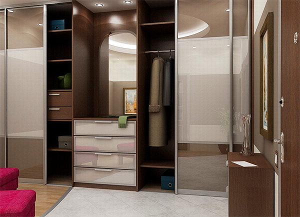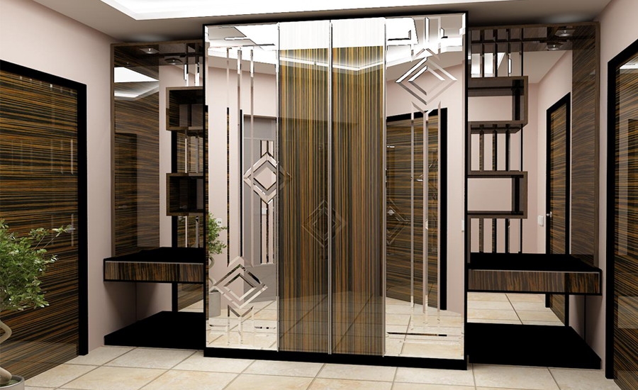 Möbeldesign kann so prägnant oder interessanter sein. Die einfachste Option sind einfache Produkte. Glänzende oder matte Oberflächen passen in nahezu jedes Design. Errichtet mit Karetnaya Estrich oder massiven Möbeln, dekoriert mit schmiedeeisernen Details Aufmerksamkeit auf sich ziehen, aber das Fach mit einer Spiegeltür, im Gegenteil, wird am deutlichsten.