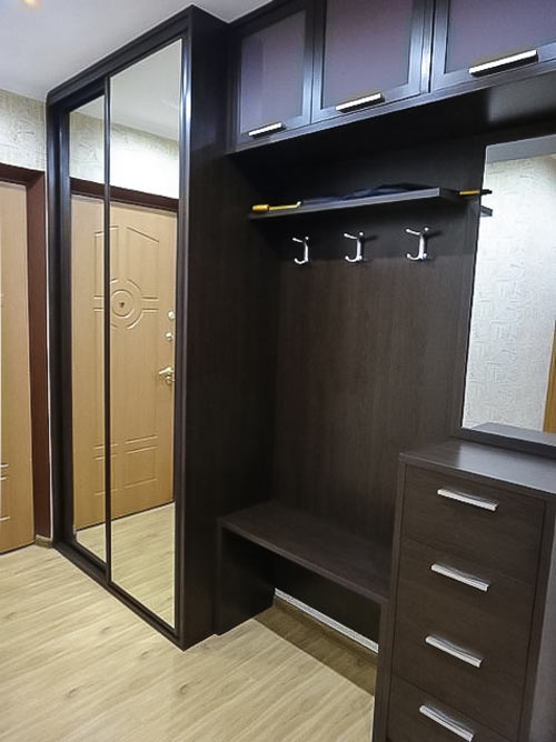 Die klassische Version der Garderobe, die uns allen aus der Kindheit vertraut ist, ist eine schlichte Garderobe mit ausschwenkenden Türen. Economy Flure werden nur solche Schränke ergänzen, da sie zu ihrem Preis die günstigste sind.