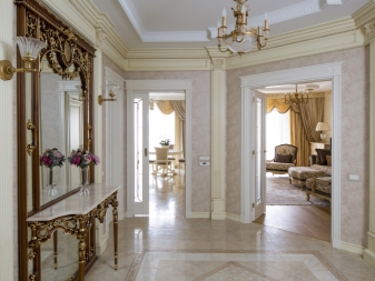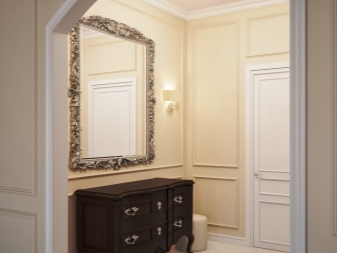 Es ist wünschenswert, dass vor dem Spiegel Platz für die Möglichkeit ist, sich von allen Seiten anzuschauen und wegzugehen. Manchmal kann es sogar in kleinen engen Fluren gemacht werden.