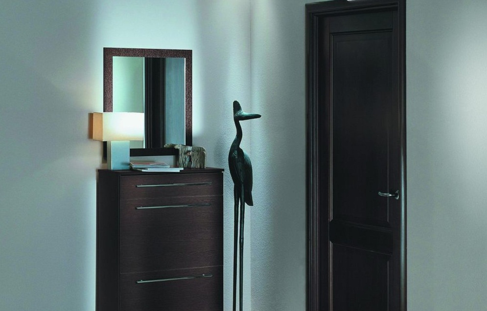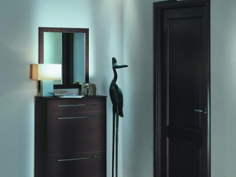 Beleuchtung und Nähe zum Ausgang - vielleicht die grundlegendsten Regeln für die Lage des Tisches mit einem Spiegel.Wir legen den letzten Schliff an die Kleidung an der Schwelle der Wohnung, so dass es bequemer ist, kurz vor dem Überqueren der Schwelle in den Spiegel zu schauen. Dies wird durch die Tatsache erleichtert, dass je näher das Design an der Vordertür ist, desto kürzer muss der Abstand in Außenschuhen entlang des Gangs bedeckt werden, um die Frisur oder den Schal zu fixieren, nachdem die Schuhe fertig angezogen sind.
