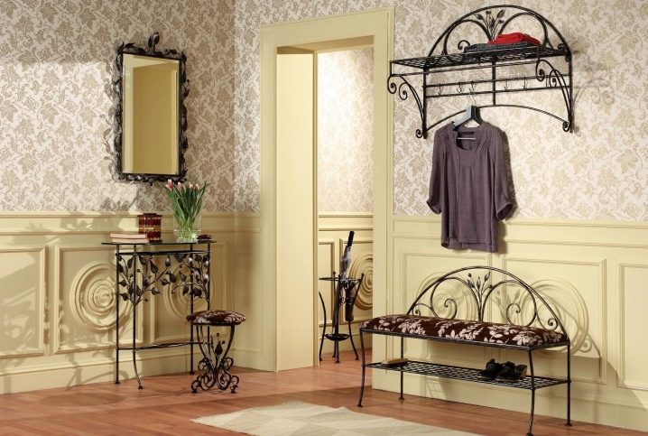 Metall ist in der Regel in allen modernen Modellen als Zubehör vorhanden: Verbindungselemente, Scharniere, Mechanismen sowie dekorative Elemente. Zum Beispiel kann es sich bei Holzprodukten des klassischen Stils um vergoldeten Metallschmuck handeln. Aber es gibt Modelle, die vollständig aus Legierungen bestehen. Sie sehen dünn und zart aus und besitzen eine ausreichende Festigkeit. Solche Modelle passen gut in den Stil der Gotik, des Barock oder der Moderne. Etwas anderer Plan, aber auch sehr gut sieht das Metall im Stil von Hi-Tech oder Loft aus.