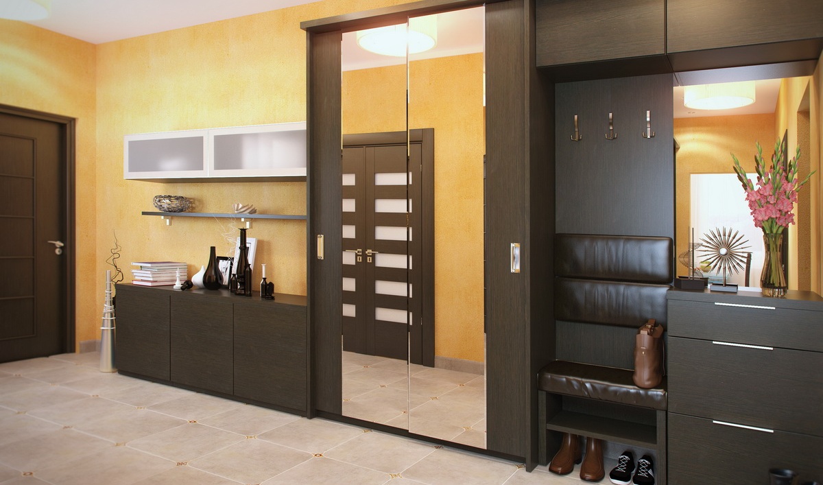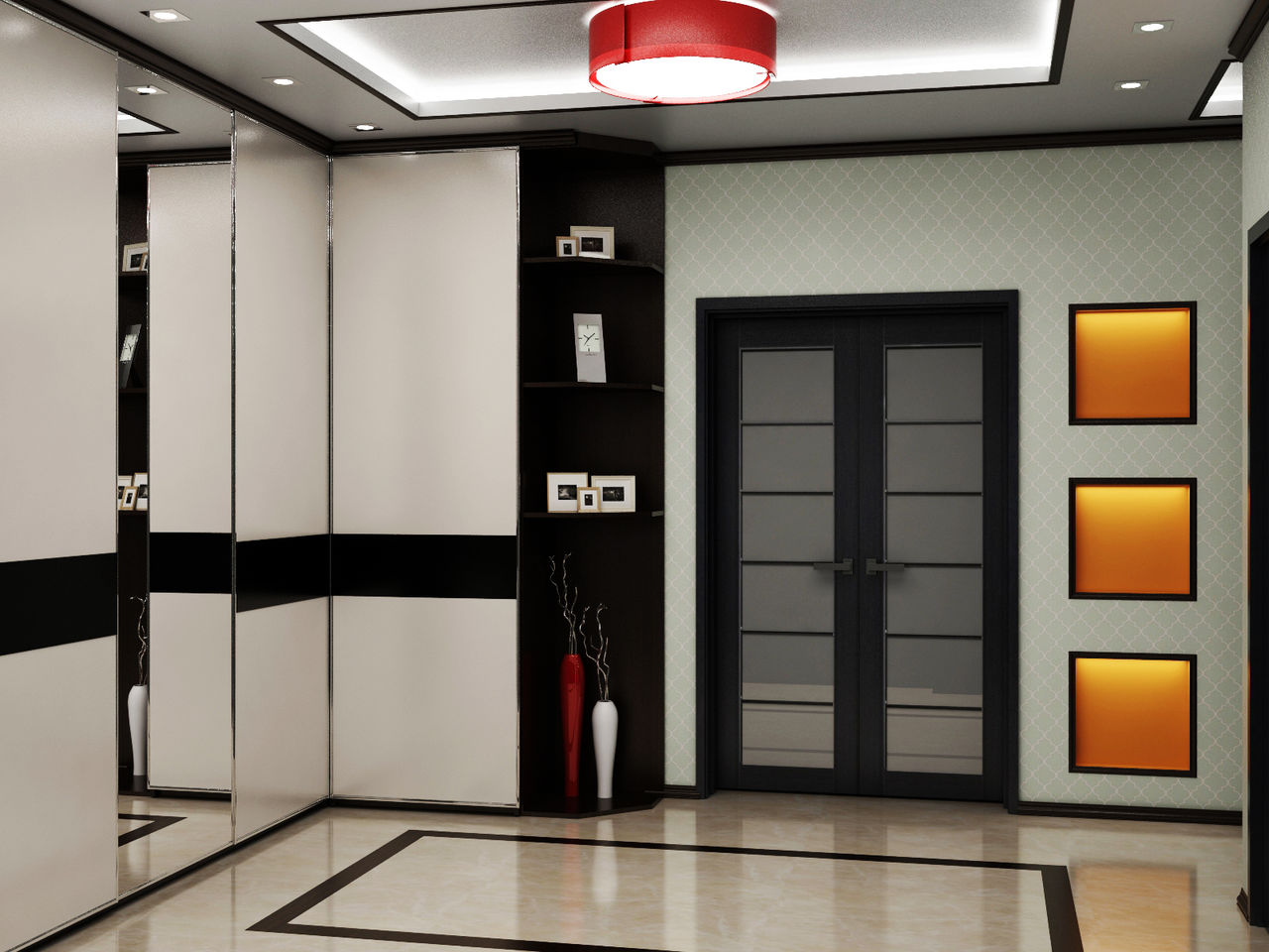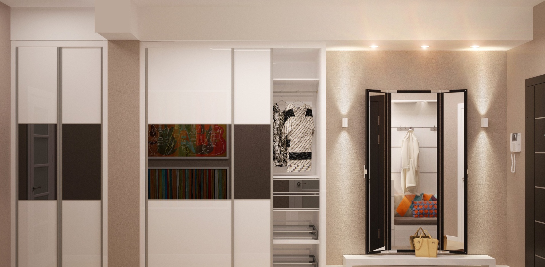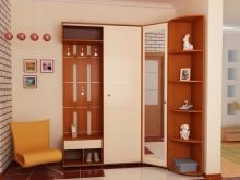 - Schiebeschränke haben heute eine große Nische im Möbeldesign und sind vollwertige Headsets. In der Regel hat dieses Gehäuse eine Spiegelfläche und eine Hintergrundbeleuchtung, wodurch der Raum optisch breiter wird. Ihr Aussehen vereinfachte das Leben und bot die Möglichkeit, Oberbekleidung, Schals, Hüte, Regenschirme und Handtaschen zu lagern. Schiebetüren sind bequem bei Platzmangel. Der Eckschrank passt am besten in den kleinen Eingangsbereich. Es braucht nur wenig Platz und viele Funktionen.