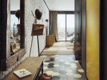 Das Fenster im Flur ist ein seltenes und originelles Phänomen. Solch ein Layout ist ein Glücksfall für Menschen mit Vorstellungskraft. Vorhänge in solchen Räumen werden lichtdurchlässig oder gar nicht genutzt. In einer ähnlichen Halle wäre ein Topf mit einer Zimmerpflanze angebracht, der den Fans des Öko-Stils gefallen wird.