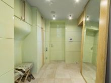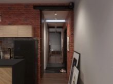 Die Wohnungen des Standard-Layout des Raumes sind durch Innentüren getrennt, die im Einklang mit dem Design und den Möbeln des Eingangs sind. Dies gibt dem Inneren Einheit und bewahrt die Individualität jedes Raumes.