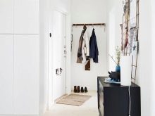 - Wenn der Flur sehr eng ist und es keinen Platz für den Schrank gibt, dann können Sie eine einfache Garderobe stellen.Auch in diesem Raum benötigen Sie eine Garderobe mit Haken, an der es sich besonders bei Regen gut eignet, Freizeitkleidung zu tragen.