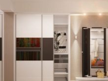 In einem großen modernen Flur befindet sich ein geräumiger und praktischer Kleiderschrank mit Schiebetüren. Darin gibt es einen Platz für Dinge aller Familienmitglieder für alle Jahreszeiten. Es ist sehr wichtig, über die "Innenseiten" eines solchen Kabinetts nachzudenken, damit alles seinen Platz hat, auch für Schuhe.