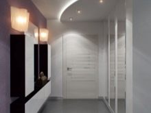 Besonderes Augenmerk sollte auf das Licht gelegt werden. Der Flur leidet unter einem Mangel an natürlichem Sonnenlicht, daher ist es sehr wichtig, auf ausreichende künstliche Beleuchtung zu achten. Designer wissen, dass man mit einem Lichtstrom leicht einen Raum zonieren, die Highlights des Interieurs hervorheben und Fehler verbergen kann. Richtig ausgewählte Lichtquellen können den vertrauten Raum verändern.