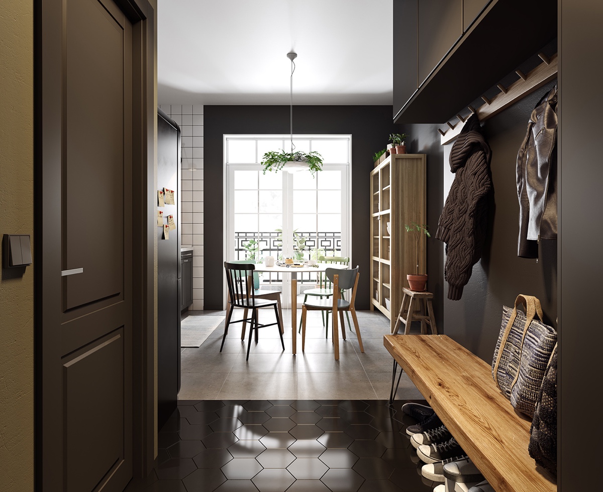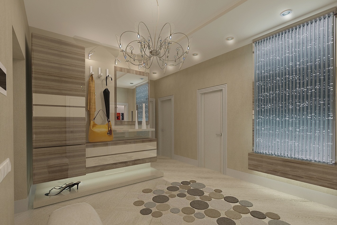 Die innere Geometrie des Raumes lässt oft keine Wahl für die Art des Flurs. Aber wenn Sie einen großen Eingangsbereich haben, dann liegt die Wahl des Designs bei Ihnen.