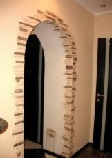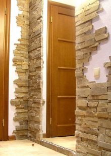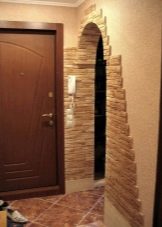 Um die Komposition im Flur zu vervollständigen, ist es notwendig, sie mit verschiedenen Accessoires, Spiegeln und Pflanzen zu dekorieren. Für einen klassischen Stil wäre die Verlegung von Steinen nicht nur an Wänden, sondern auch auf Böden oder Säulen eine ausgezeichnete Option. Die Öffnungen im Raum werden empfohlen, um das Material nach dem Zufallsprinzip zu schneiden,durch Erstellen von Farbübergängen und geometrischen Formen. Die Verlegung sollte mit Nähten oder Schließen erfolgen, wobei der Fugenmörtel einen Kontrast zur Grundfarbe des Finishs erhält.
