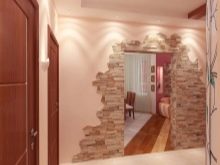 Heute empfehlen die meisten Designer, Flure auf ungewöhnliche Weise zu dekorieren, indem sie Wände mit Tapeten und dekorativen Steinen bedecken. Dank dieser ungewöhnlichen Kombination können Sie einen atemberaubenden Effekt im Innenraum erzielen. Diese Art der Veredelung kann nicht nur im Flur, sondern auch im Flur des Ganges angewendet werden, da sie schön aussieht und zu jedem Stil passt.