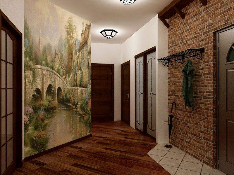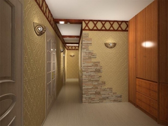 In jüngerer Zeit ist das Design des Korridors im Stil der Country-Musik oft anzutreffen. In ihm sind die Wände mit grauen Steinen von unregelmäßigen Formen verziert. Gleiches gilt für das rustikale Interieur. Für ihn ist die maximale Natürlichkeit der Materialien wichtig.