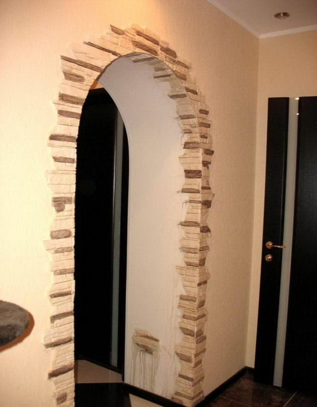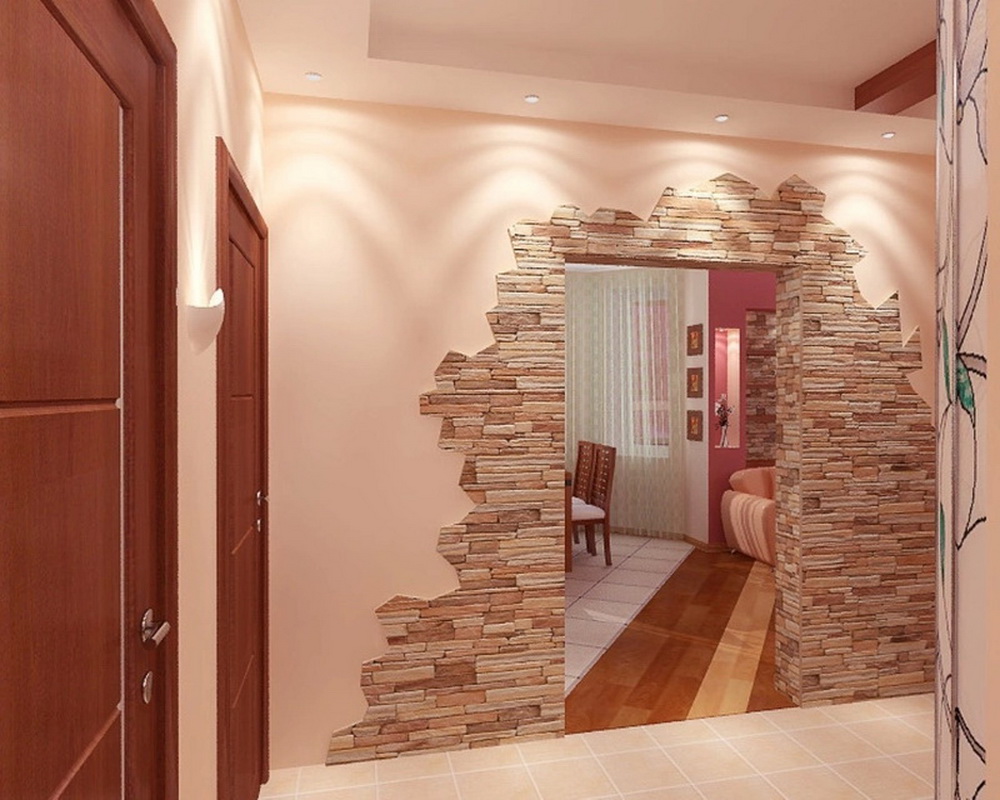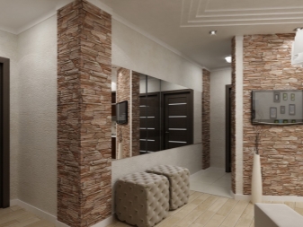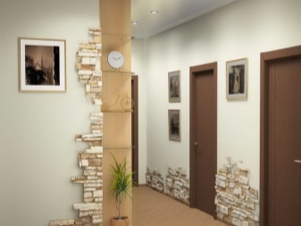 Bei der Wahl dieser Art von Finish ist es notwendig, die Harmonie der Farben der Leinwand und des dekorativen Steins zu berücksichtigen. Wenn Sie zum Beispiel helle Farben verwenden, erzielen Sie einen guten visuellen Effekt und erhöhen die Lautstärke des Flures, während dunkle Farben den Raum reicher und heller machen.