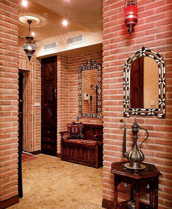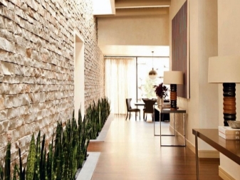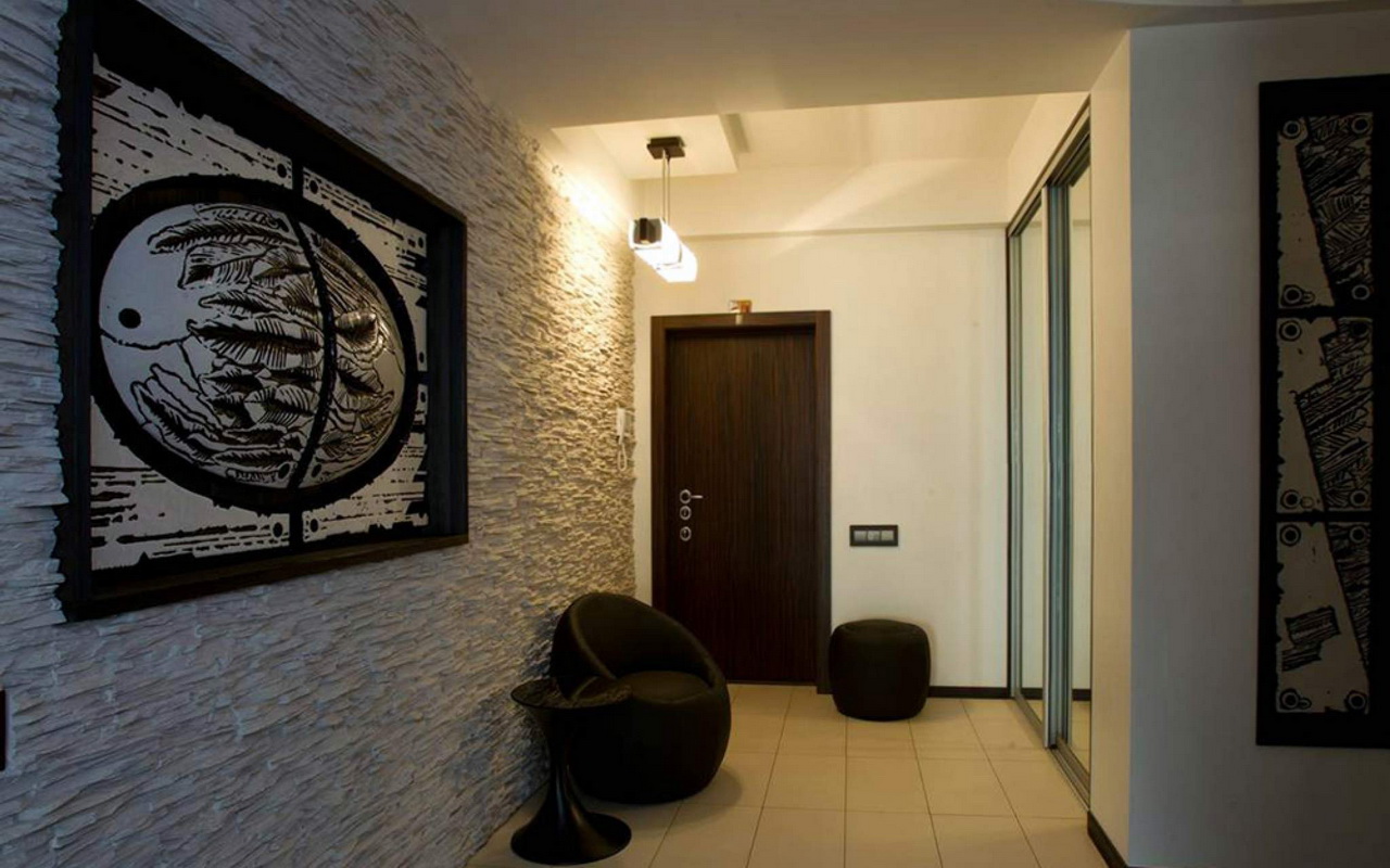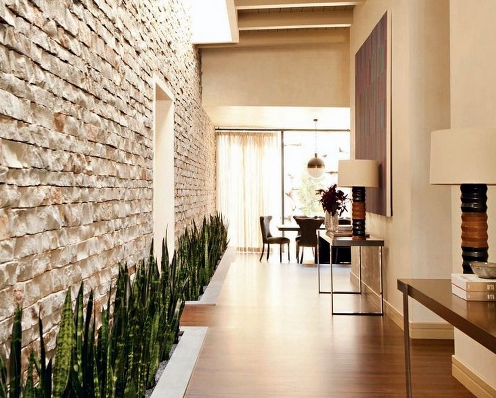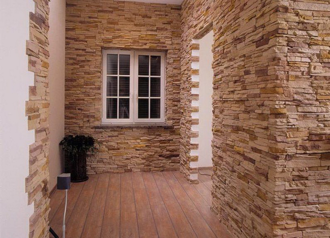 - Wie für das natürliche Materialdann ist es ein Teil der Natur, es sieht reich aus und füllt die Atmosphäre des Raumes mit lebhaftem Atem. Je nachdem, welches Muster Sie bei der Verlegung benötigen, können Sie verschiedene Arten von Steinen auswählen, da jede von ihnen eine individuelle Farbe, Form und Textur hat. Bei Wandverkleidungen in Fluren werden häufig Granit und Sandstein bevorzugt. Für einen wilden Stein im Innenraum ist es wichtig, volumetrischen Raum zu haben, weil er massiv aussieht.