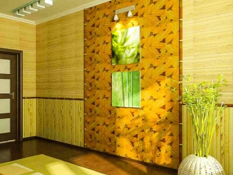 - Glasfaser haben eine ungewöhnliche reliefierte Oberfläche, deshalb sehen sie in Verbindung mit einem dekorativen Stein vorteilhaft aus. Wenn der Flur im Öko-Stil gestaltet wird, passt der Wandschmuck mit Bambus. Es ist natürlich, umweltfreundlich, verursacht keine Allergien, obwohl es nicht billig ist. Bevor Sie den Bambus ankleben, müssen die Wände gut ausgerichtet sein und alle ihre Mängel beseitigen. Die Pflege einer solchen Beschichtung ist einfach: Saugen Sie die Oberfläche gut ab und wischen Sie sie mit einem feuchten Tuch ab.