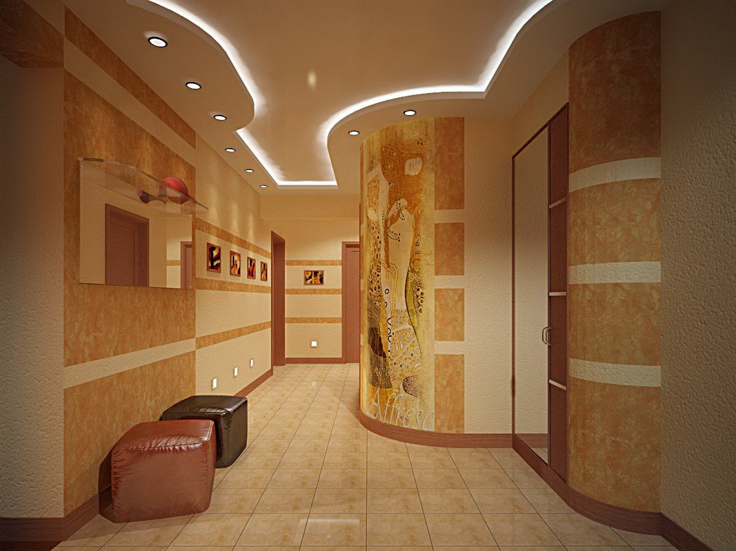 Die Halle sollte schön und gemütlich sein, so dass es bei der Planung wichtig ist, das Farbschema zu berücksichtigen.In der Regel wählen Sie für moderne Interieurs braune, graue oder beige Farbtöne.