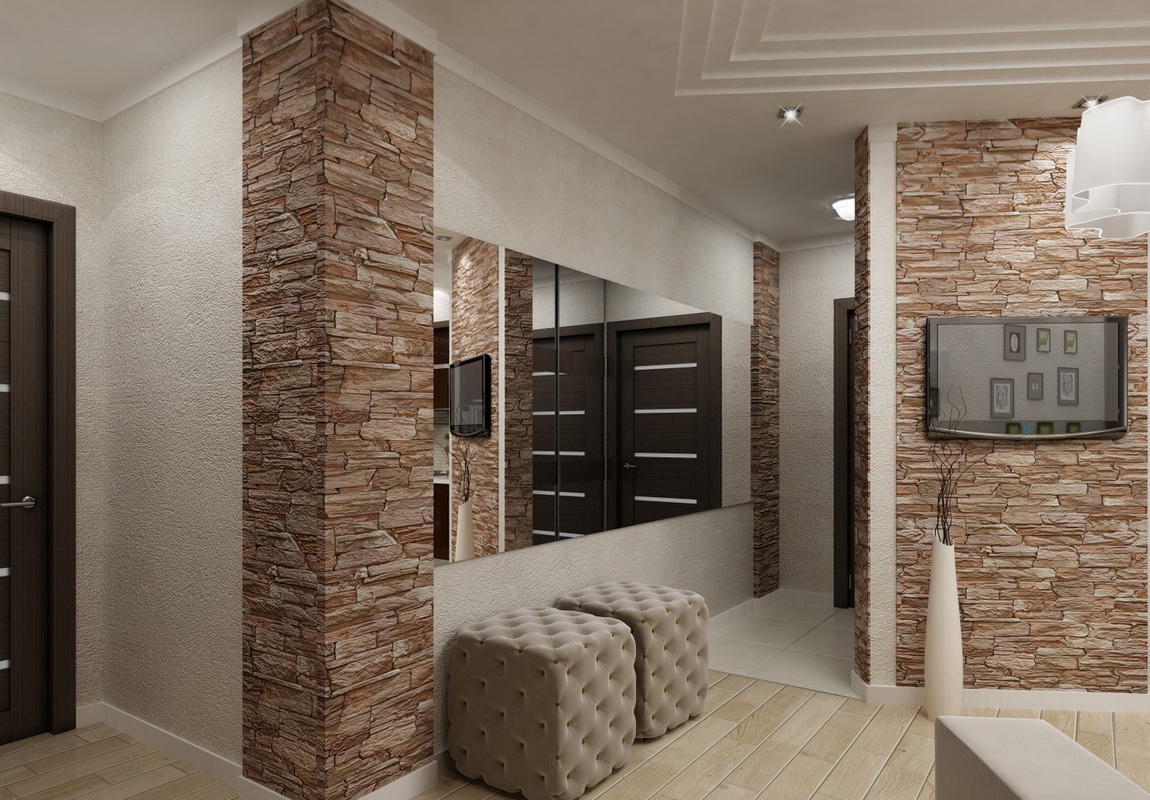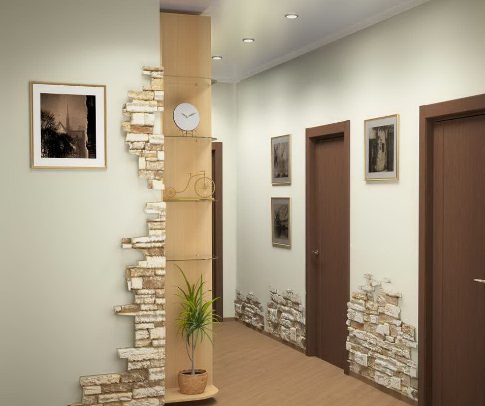Dekorieren Sie den Flur mit dekorativen Stein und Tapeten