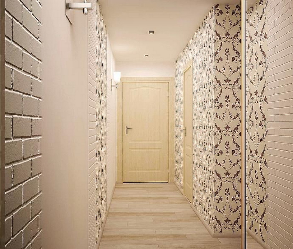 Darüber hinaus sind die Wände nach der Dekoration leicht zu reinigen und weisen eine hohe Verschleißfestigkeit auf. Bevor Sie mit der Arbeit beginnen, müssen Sie die Wandkonfiguration, das Beleuchtungsniveau und die Raumgröße korrekt berechnen, denn im Flur eines kleinen Bereichs wird eine solche Dekoration den Raum kleiner machen, und ein spezieller Rahmen der Öffnungen mit Spiegeln wird den Raum visuell erweitern.