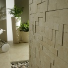 Steindeko kann perfekt mit Dekoputz, Holz, gewöhnlichen Tapeten, Fliesen, Stuck oder Glas kombiniert werden. Es gilt als hervorragender Hintergrund für lebende Pflanzen und Metallprodukte.