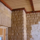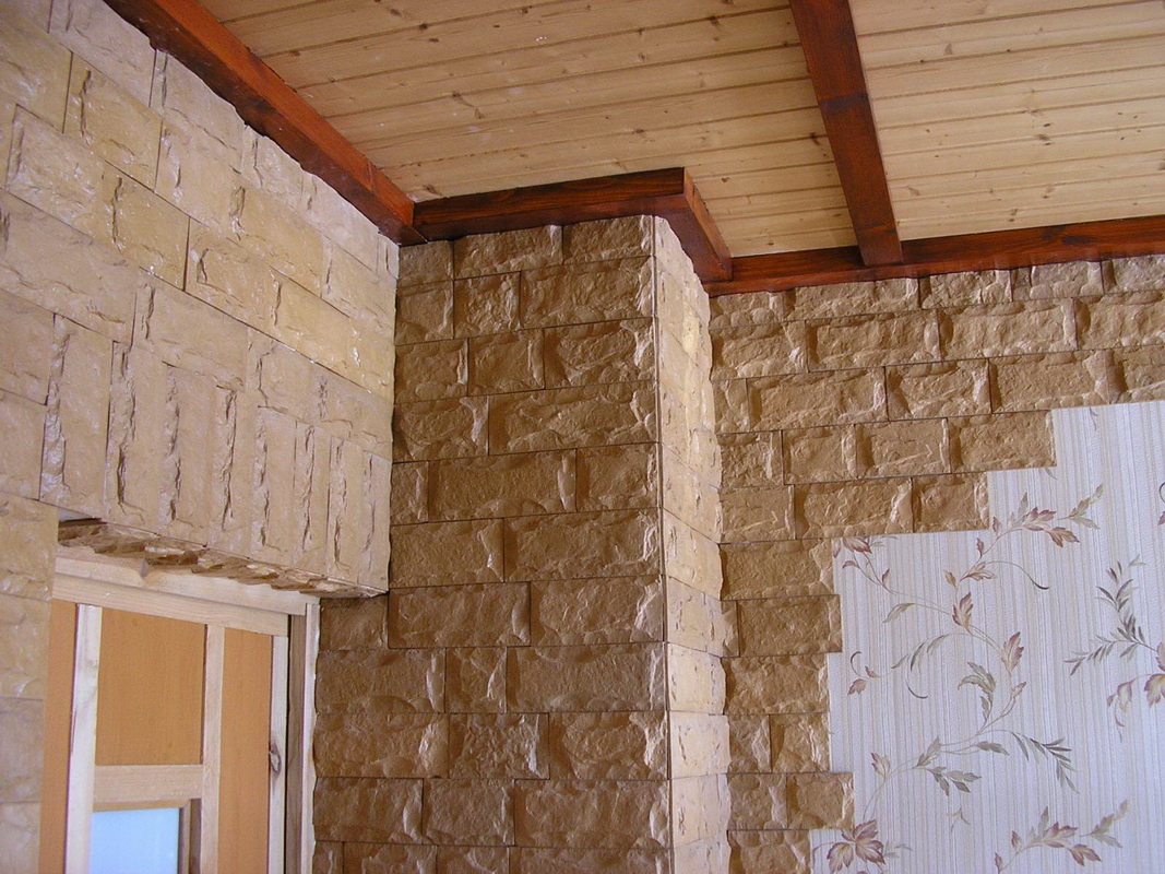 Die Holzwand wird mit Imprägnierung und dann Grundierung bedeckt. Nach all den Vorbereitungsarbeiten können Sie mit der Installation fortfahren, der Stein wird auf eine kahle Wand mit Gips montiert, während es keine Kontamination auf der Oberfläche der Wände geben sollte, dies kann die Qualität der Haftung des Veredelungsmaterials auf der Basis verringern. Es ist möglich, dekorative Elemente auf der Tapete nur mit Fragmenten zu kleben, aber man kann nicht sicher sein, dass die Papiertapete dem Stein standhält und nicht mit der Zeit bricht.