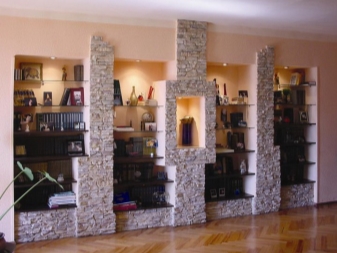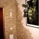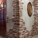 Ein Gipsstein hat ähnliche Eigenschaften: angemessener Preis, geringes Gewicht und die Möglichkeit der Montage an einer Gipskartonwand. Aber diese Art von dekorativen Materialien haben Angst vor Feuchtigkeit und können im nassen Zustand kollabieren. Nach dem Einbau von Putz- oder Klinkerziegeln muss daher die Oberfläche mit Acryllack oder Schutzimprägnierung abgedeckt werden.