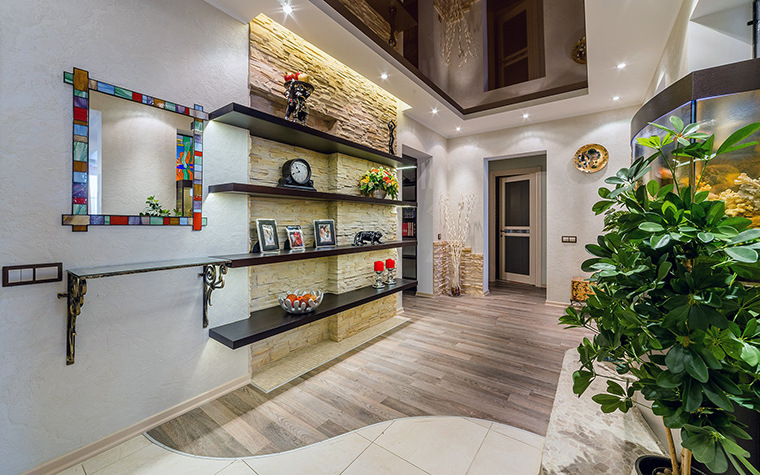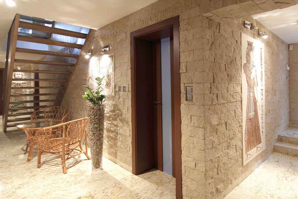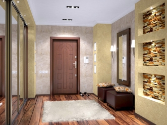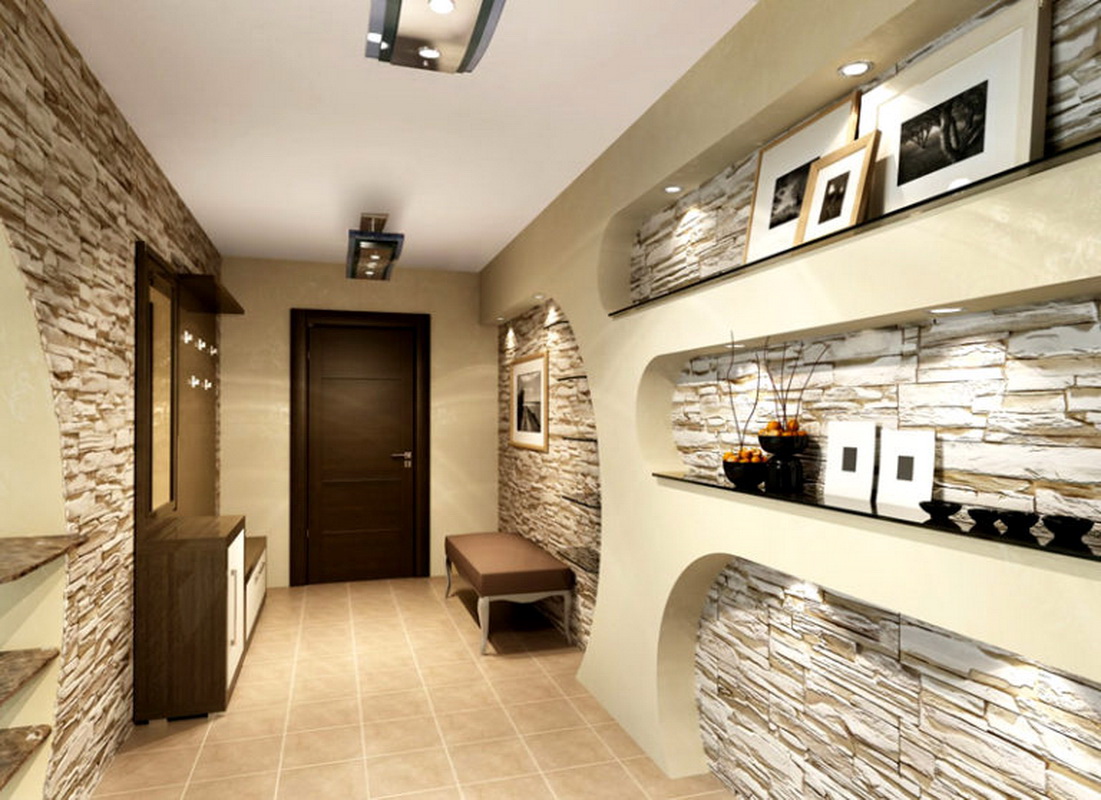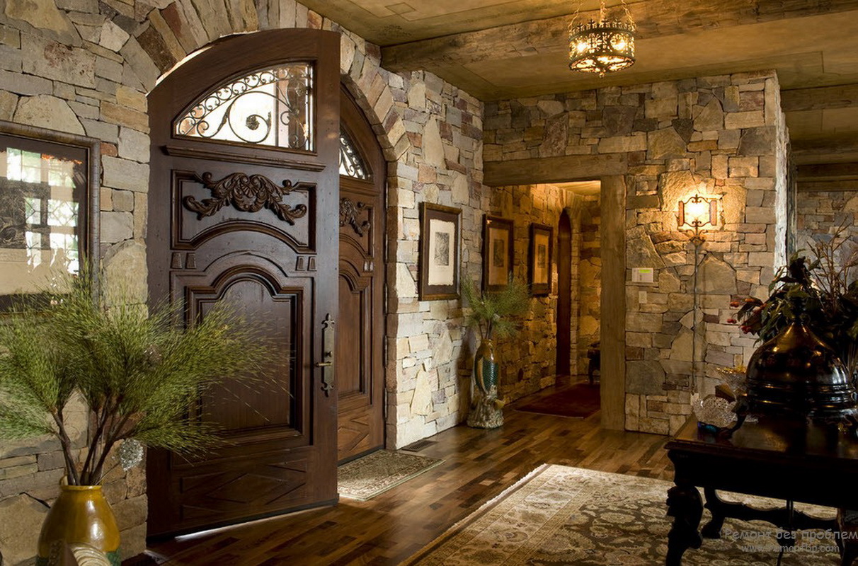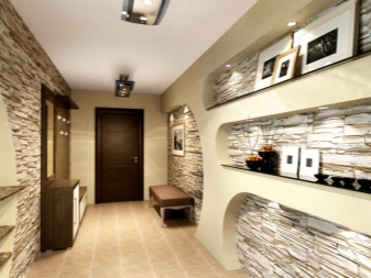 Designer sagen, dass eine besondere Rolle in der Wohnung dem Flur zugeordnet ist, denn dies ist der erste Raum, als ob er Gäste trifft. Aufgrund seiner Eigenschaften ist der Stein am besten für die Fertigstellung des Korridors geeignet, da sich im Eingangsteil der Wohnung der meiste Schmutz und Staub ansammelt, und es ist die Eingangshalle, die gründliche und häufige Reinigung erfordert.Sie kann ein stilvolles Aussehen geben oder die Wirkung eines alten Zimmers schaffen.