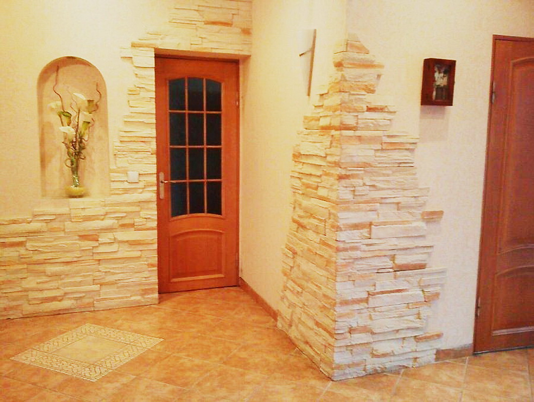 Einen dekorativen Stein im Flur machen: Ideen im Innenraum