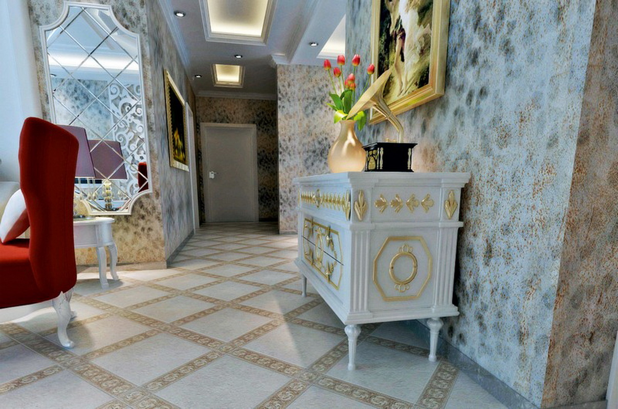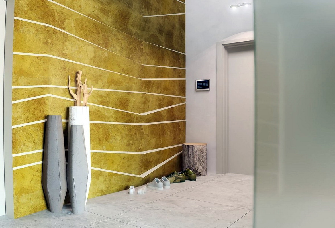 Allgemein,Im Korridor werden künstliche Beleuchtungsmethoden verwendet - Strahler und Glühbirnen, so dass es für einen schmalen dunklen Flur besser ist, einen hellen Stein zu wählen, der den Raum visuell erweitert. Ruhige Steintöne belasten den Raum nicht und "zerquetschen" Sie nicht. Gleichzeitig sollte das Farbschema der Fliesen harmonisch mit den übrigen Dekorelementen kombiniert werden.