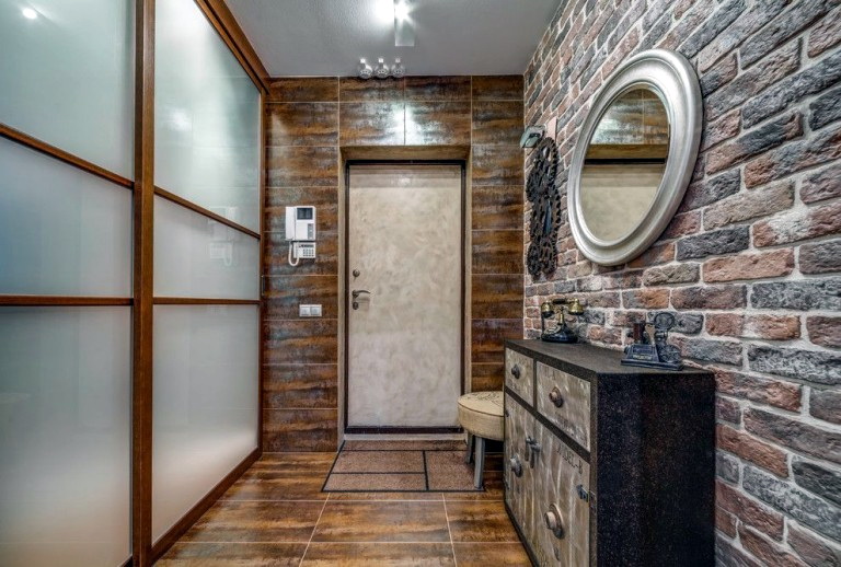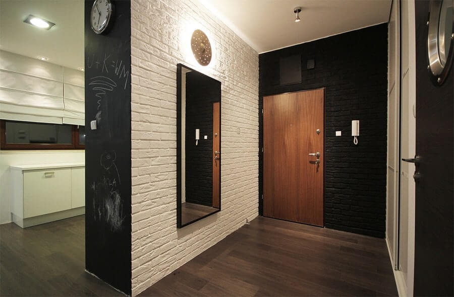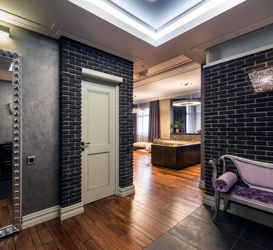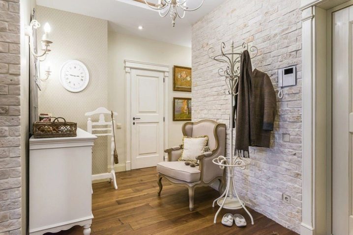 Es ist erwähnenswert, dass der Stein auch in einem klassischen Stil verwendet werden kann, während Sie wie in einer Burg sein werden. Die Hauptsache, die mit diesem Design notwendig ist, ist ein großer Raum. Wenn Ihre Eingangshalle geräumig genug ist, können Sie mit Sicherheit leichte Ziegelfliesen als Dekoration für die ganze Wand wählen. Auf jeden Fall sieht ein großer Spiegel in einem Steinrahmen sehr aristokratisch und stilvoll aus. Darüber hinaus ist die Gestaltung von dekorativen Steinmauern nicht nur innerhalb der Wohnung möglich, sondern auch am Eingang in der Nähe der Eingangstür.