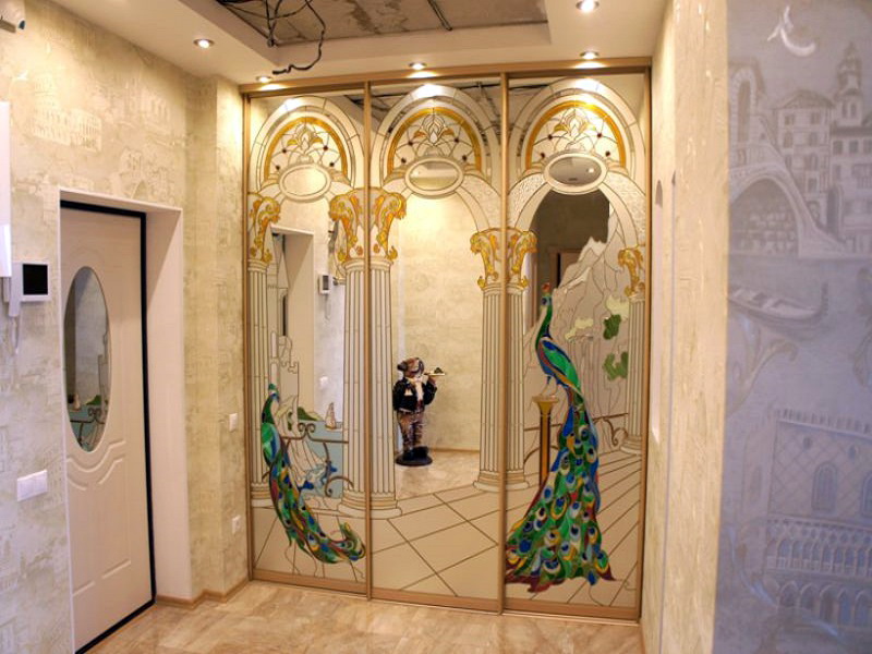 Mosaikstein ist ideal für die Dekoration im Flur. Es verwendet Elemente unterschiedlicher Farbe und Form.