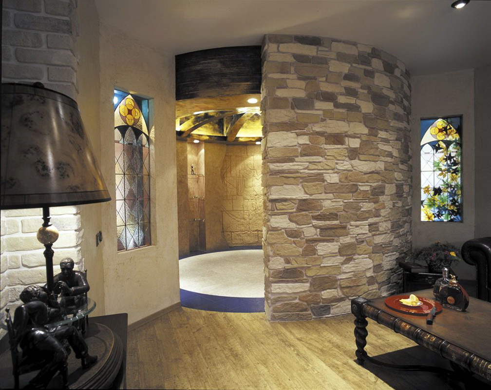 Dekor mit einem Stein ist eine sehr teure Methode der Dekoration, so berechnen Sie das Budget im Voraus. Sie sollten jedoch nicht vergessen, dass die künstliche dekorative Verlegung sehr langlebig und zuverlässig ist, so dass Sie für die nächsten 15 Jahre keine zusätzliche Zeit, Mühe und Geld für Reparaturen aufwenden müssen, und es genügt, nur die Farbe der Wände zu erfrischen.