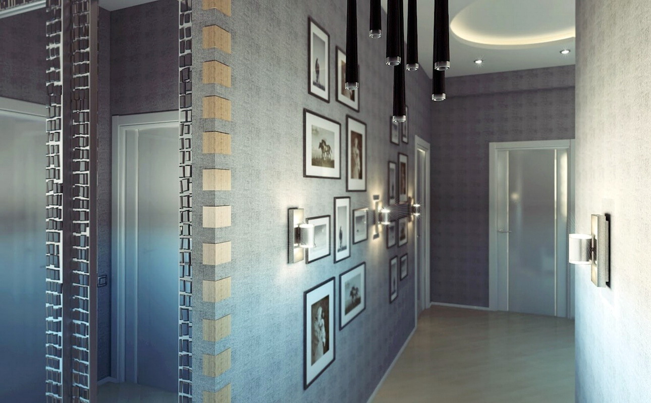 Wer einmal repariert hat, weiß, dass die weiße Farbe den Raum erweitert, also wählen Sie für einen kleinen Korridor Materialien für helle Farbtöne. Der Innenraum wird nicht langweilig und langweilig aussehen.