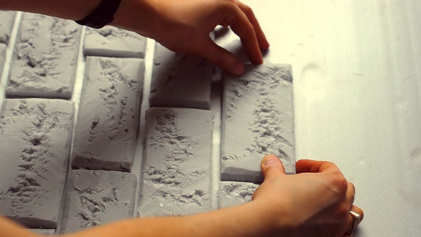 Ein flexibler dekorativer Stein wird aus Sandstein hergestellt. Hartgestein wird so dünn wie möglich geschnitten und auf eine glatte Oberfläche poliert. Danach wird eine Scheibe Sandstein auf Textilien aufgeklebt.Aufgrund dieser Herstellungsweise bleiben das natürliche Muster, die Textur und das einzigartige flexible Design erhalten.