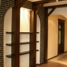 - Regal. Ungewöhnliche moderne Lösung - Lampen, in die Deckennische oder das oberste Regal von Möbelstücken eingebaut. Deutlich platzsparend und organisch in den Innenraum schauen.