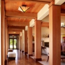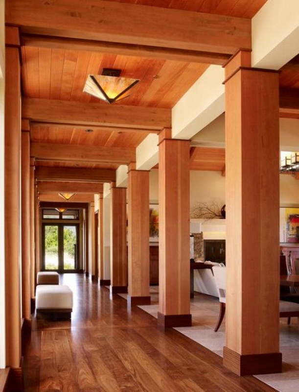 - Von einem Baum (Bretter). Natürliches Holz hat viele positive Eigenschaften, obwohl es selten verwendet wird, um die Decke des Korridors zu schmücken. Dies ist das umweltfreundlichste Material, das Geräusche perfekt absorbiert und jedem Raum Komfort bietet. Der einzige Nachteil ist die geringe Feuchtigkeitsbeständigkeit. Daher erfordern Holzoberflächen eine Behandlung mit speziellen Imprägnierungen.