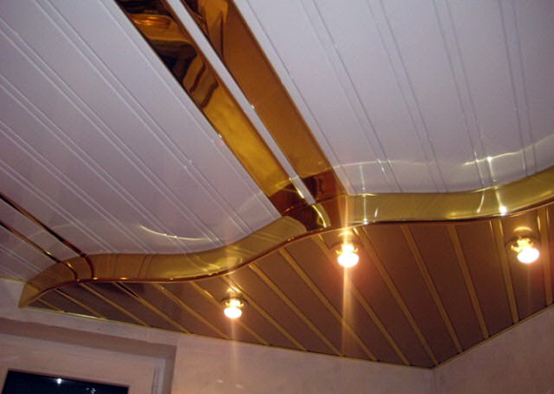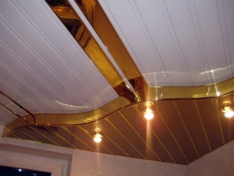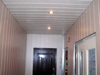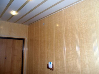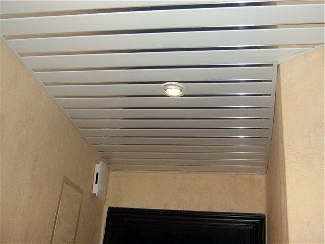 Und wenn Sie die Lamellen über einen schmalen Korridor führen, können Sie den Raum optisch erweitern. Die Montage der Kunststoffplatten erfolgt auf Kleiderbügeln oder direkt auf dem Sockel mit selbstschneidenden Schrauben oder Flüssignägeln. Die Decke ist einfach zu bedienen.