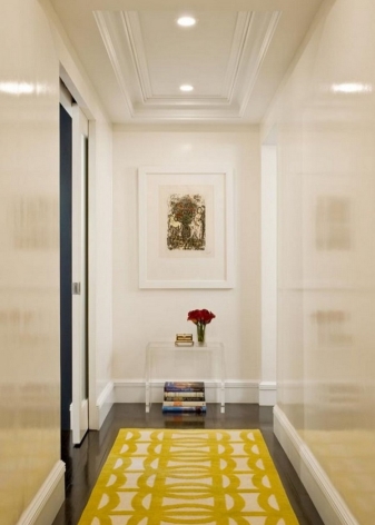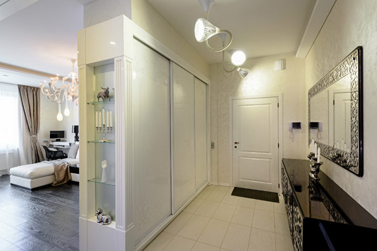 - Für einen quadratischen Flur. Ideale Parameter für jeden Raum, in dem Sie sich den Flug von Designideen und Fantasie leisten können. Der Platz an der Basis des Korridors bietet die Möglichkeit, alle Optionen für Finishing- und Farblösungen zu nutzen. Um den Raum optisch zu verkomplizieren, Geometrie hinzuzufügen und Dynamik im Inneren zu erzeugen, können Sie mehrstufige Konstruktionen aus Trockenbau und komplexer Beleuchtung verwenden.