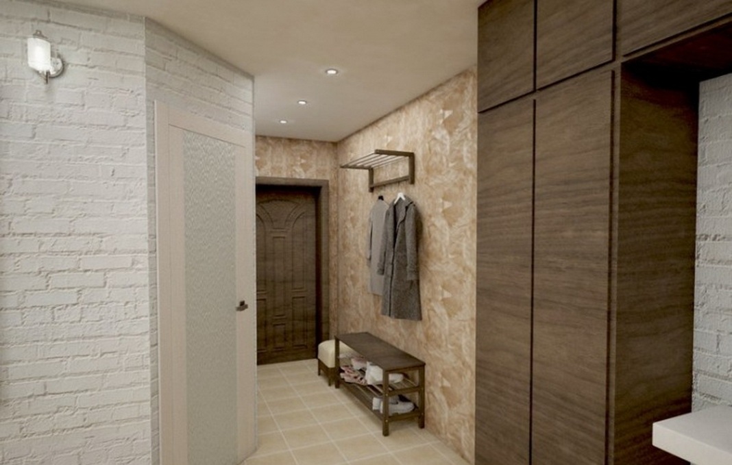 Braun. Wie die weiße Farbe, erhöhen sandige gelbe und hellbraune Farbtöne den Flur visuell, schaffen Gemütlichkeit, fördern Ruhe und Wärme.