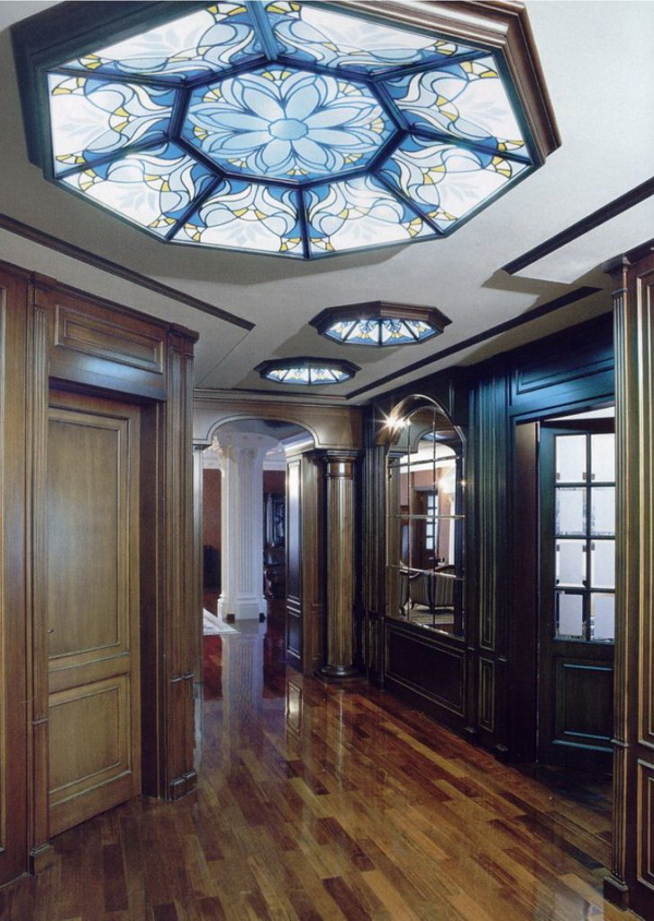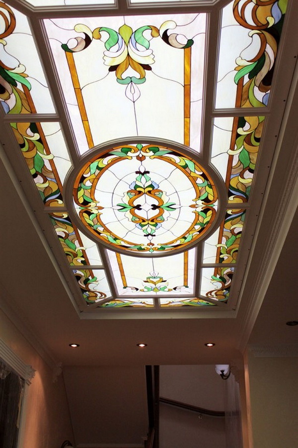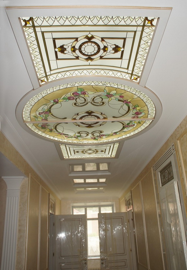 - Glasfenster. Gönnen Sie sich die Elite-Optionen für die Fertigstellung von Räumen, das Glasmosaik beeindruckt mit der Schönheit und Einzigartigkeit eines Ornaments. Unabhängig von der Form der Konstruktion passt eine solche Decke in jedes Interieur, macht es teurer und eleganter. Richtig gebaute Beleuchtung schafft eine besondere Atmosphäre, die dem Raum ein bestimmtes Farbschema verleiht, ohne dass ein Kronleuchter an der Decke hängen muss. Glasmalerei Dekoration organisch in verschiedenen Stilen des Innenraums, die relevantesten für farbiges Glas aussieht: modern,Hallo-Tech, gotisch.