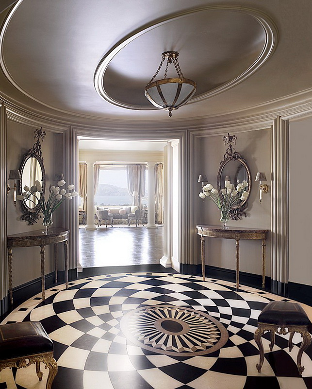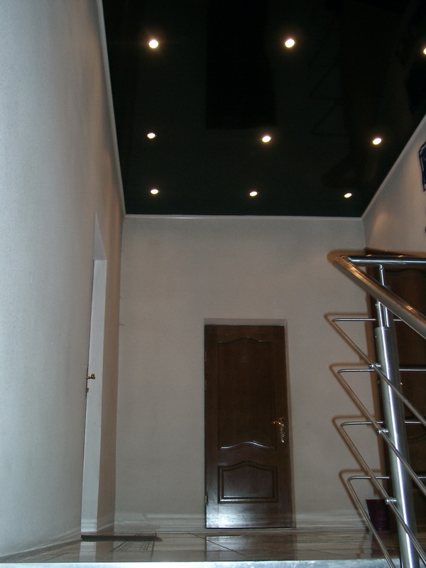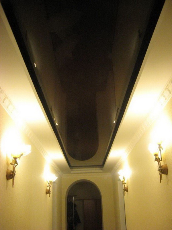 Schwarz Der weiße Antagonist ist schwarz und fügt dem Raum nicht Raum und Volumen hinzu, wenn es nicht um große Räume geht. Der Ausdruck "alles ist genial ist einfach" ist auf das Merkmal der schwarzen Farbe durchaus anwendbar, weil es die Fähigkeit hat, mit irgendwelchen Interieurs kombiniert zu werden, ihnen Verfeinerung und Stil hinzufügend. Um Traurigkeit und Trauer zu vermeiden, genügt es, ihn in ein Paar weißer oder anderer Spektralfarben zu bringen. Das Fehlen einer schwarzen Decke im Flur ist die Notwendigkeit, es oft zu reinigen, weil schwarzer Staub mehr auffällig ist.
