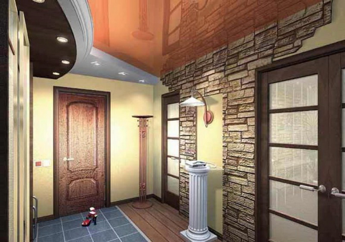 Flur - die Karte eines Hauses. Es ermöglicht einer Person, die es betritt, einen ersten Eindruck von einer Wohnung und ihren Bewohnern zu bekommen. Eine wichtige Rolle spielt dabei die Wahl der Farblösung für die Deckenverkleidung des Flurs. Bei der Wahl der Farbe der Decke sollte von der Farbe der Möbel, Wände und Boden und der Technik selbst Deckengestaltung ausgehen.