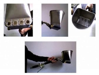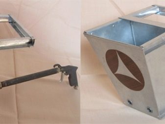 Um den Arbeitsprozess zu beschleunigen, muss normalerweise die Düse für einen bestimmten Materialtyp vor dem Sprühen installiert werden (z. B. zum Malen oder Auftragen von Klebstoff). Heimgeräte können jedoch oft nicht mit Beton umgehen. Der Nachteil von handgeführten "Trichtern", die von ihnen selbst erzeugt werden, ist die Tatsache, dass sie nicht für die Fertigstellung der Decke gedacht sind. Dies muss bei der Herstellung des Produkts berücksichtigt werden. In diesem Fall muss der "Hopper" ein spezielles Gerät wiederherstellen oder kaufen.