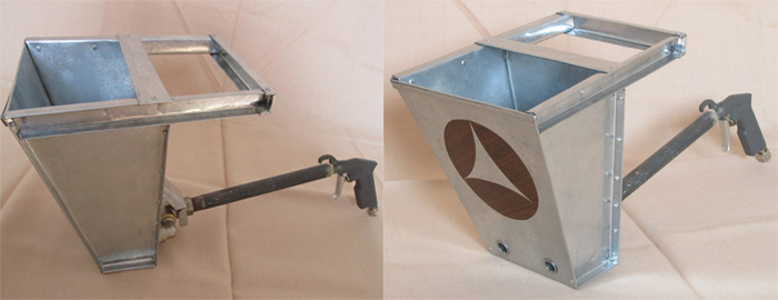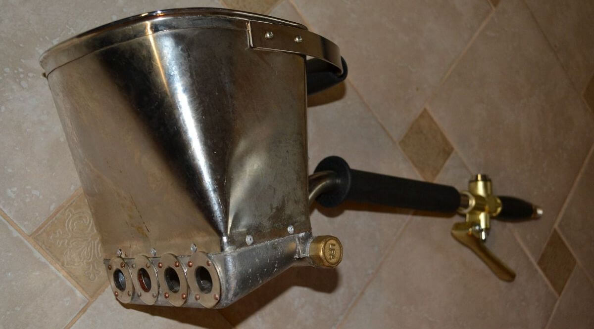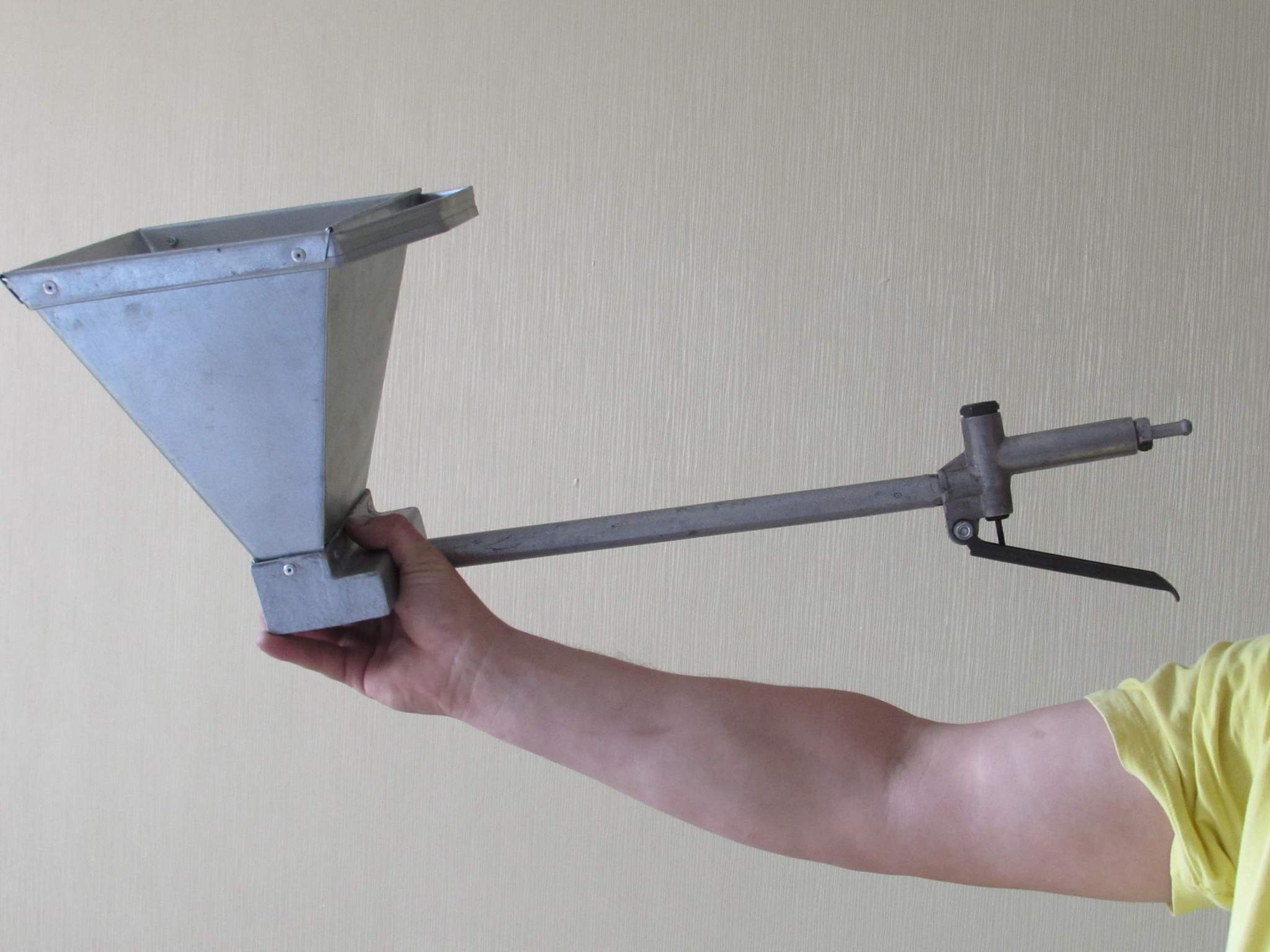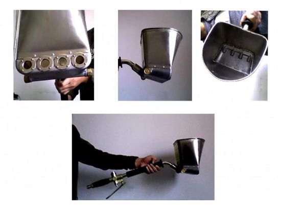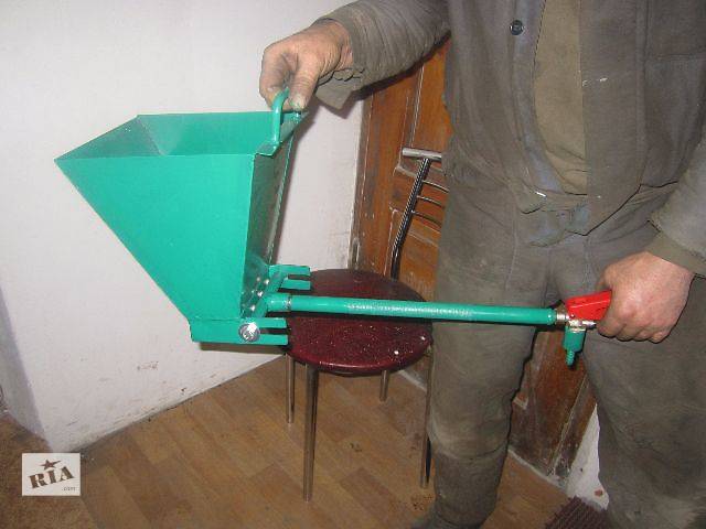 Die Gestaltung des Putztrichters ist recht einfach. Es hat jedoch die Funktion, die Vorschubgeschwindigkeit des vorhandenen Mörtels für 1 Portion der Gipsmasse von 5 bis 10 Sekunden einzustellen. Dies ermöglicht eine Variation der Dicke der aufgebrachten Schicht, basierend auf der Wahl der Mischung und der geplanten Endbearbeitung. Um zum Beispiel ein Relief-Finish-Pflaster aufzutragen, braucht es mehr.