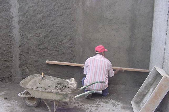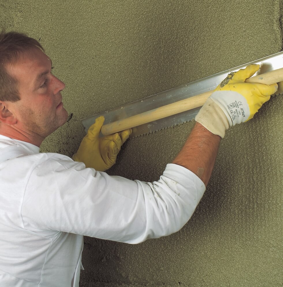 - Mehr Grip. Aufgrund des Drucks und der Aufprallkraft des Gemisches auf die Basis wird die Haftung mit der Oberfläche verbessert.