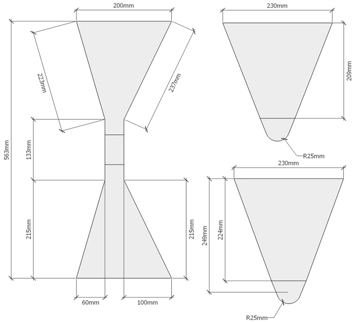 Um die Installation einer Gipsschaufel zu vereinfachen, ist es besser, ein vorgefertigtes Schema zu wählen, indem Sie eine Zeichnung mit allen angegebenen Abmessungen herunterladen und ausdrucken. Zum Beispiel wird es ein Eimer für 6-8 kg Lösung sein. Die folgenden Anweisungen lauten wie folgt: