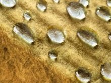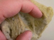 - Ernsthaftes Minus kann sein die Fähigkeit des Materials, Feuchtigkeit aufzunehmen (Dieser Mangel fehlt in Steinwolle). Feuchtigkeit kann zu Schrumpfung der Isolierung und deren Zerstörung führen. Daher müssen alle Arbeiten im Freien bei warmem und trockenem Wetter durchgeführt werden. Um eine lange Lebensdauer zu gewährleisten, müssen Sie die Regeln der Installation beachten und nicht vergessen, eine hydrophobe Lösung für die Verarbeitung der Beschichtung zu verwenden.