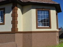 - Für Außenputzarbeiten wird eine spezielle Fassadenserie benötigt.Seine Dichte beträgt 125-165 kg / m3. Eine solche hohe Dichte ist für die Festigkeit der Beschichtung und für das Gewicht des Pflasters erforderlich.