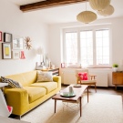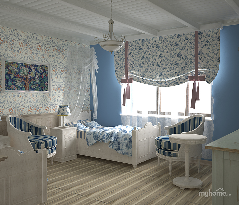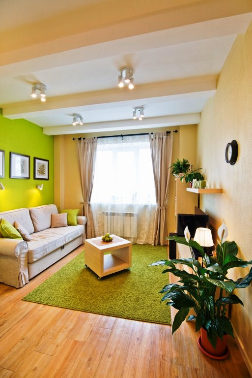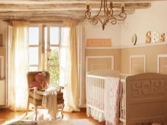Um ein solches Zimmer zu dekorieren einfarbige Strahlen der entgegengesetzten Farbe zur DeckeDas wird dem Interieur Raffinesse verleihen.